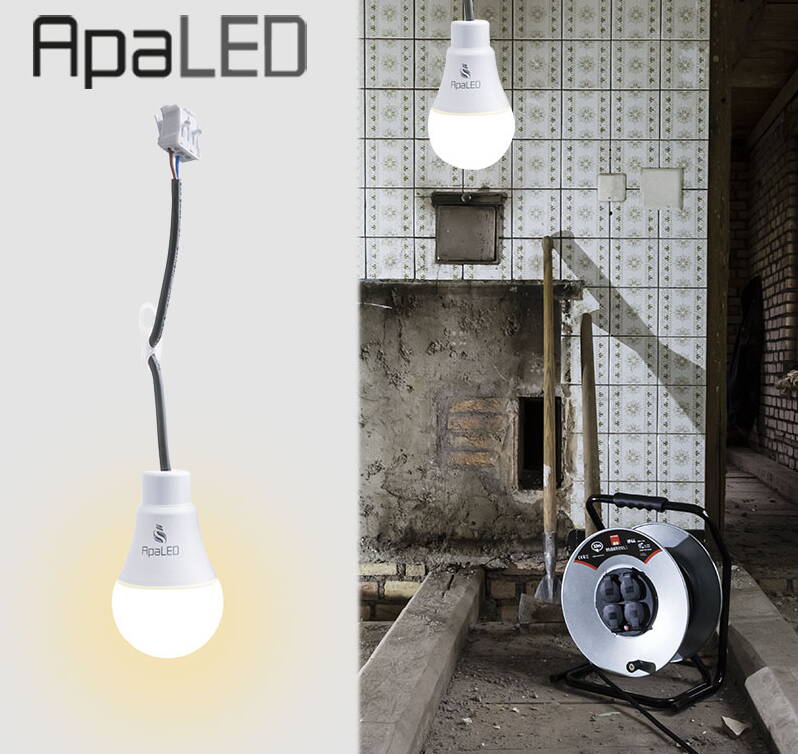Anschlusskabel und Steckklemen ermöglichen eine leichte Montage. Im Vergleich mit herkömmlichen Baustellenfassungen, bietet die ApaLED folgende Vorteile: