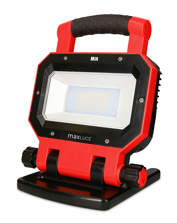 maxLUCE FLOODLIGHT 30 & 30BT – zwei Multitalente, wenn es um Sicherheit auf der Baustelle geht. Die robusten Gehäuse bieten optimalen Schutz sowohl gegen mechanische Beanspruchung als auch gegen das Eindringen von Wasser und Staub. Die beiden Baustrahler emittieren das Licht in der natürlichen Lichtfarbe 4'000 Kelvin und sorgen mit einem Lichtstrom von 2'500 Lumen für eine gute und gleichmässige Ausleuchtung. Dank des stufenlos einstellbaren Standfusses / Haltebügels kann das Licht variabel in jede gewünschte Richtung gelenkt werden. Die kompakten Masse und das geringe Gewicht sorgen für ein einfaches Handling bei Aufbau und Transport. Die verschleiss- und wartungsfreien LED-Arbeitsleuchten kommen ohne fest verbundenes Anschlusskabel aus, wodurch ein flexibler, mobiler und verlässlicher Einsatz möglich ist.
